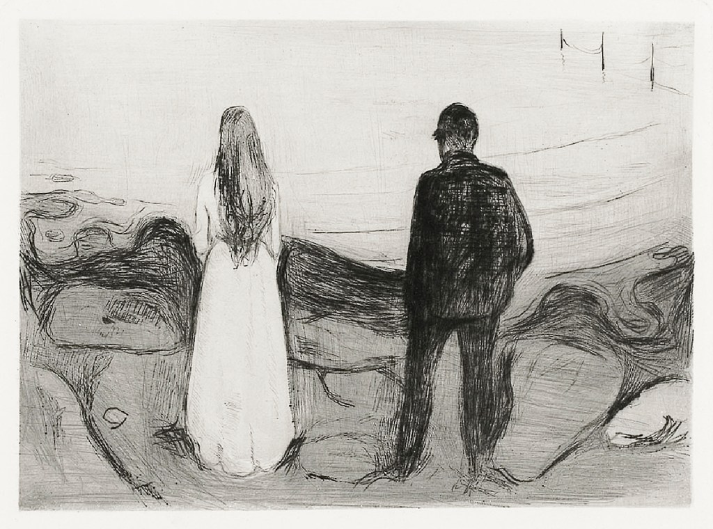 Two Human Beings. The Lonely Ones (1894) by Edvard Munch. Original from The Art Institute of Chicago. Digitally enhanced by rawpixel.